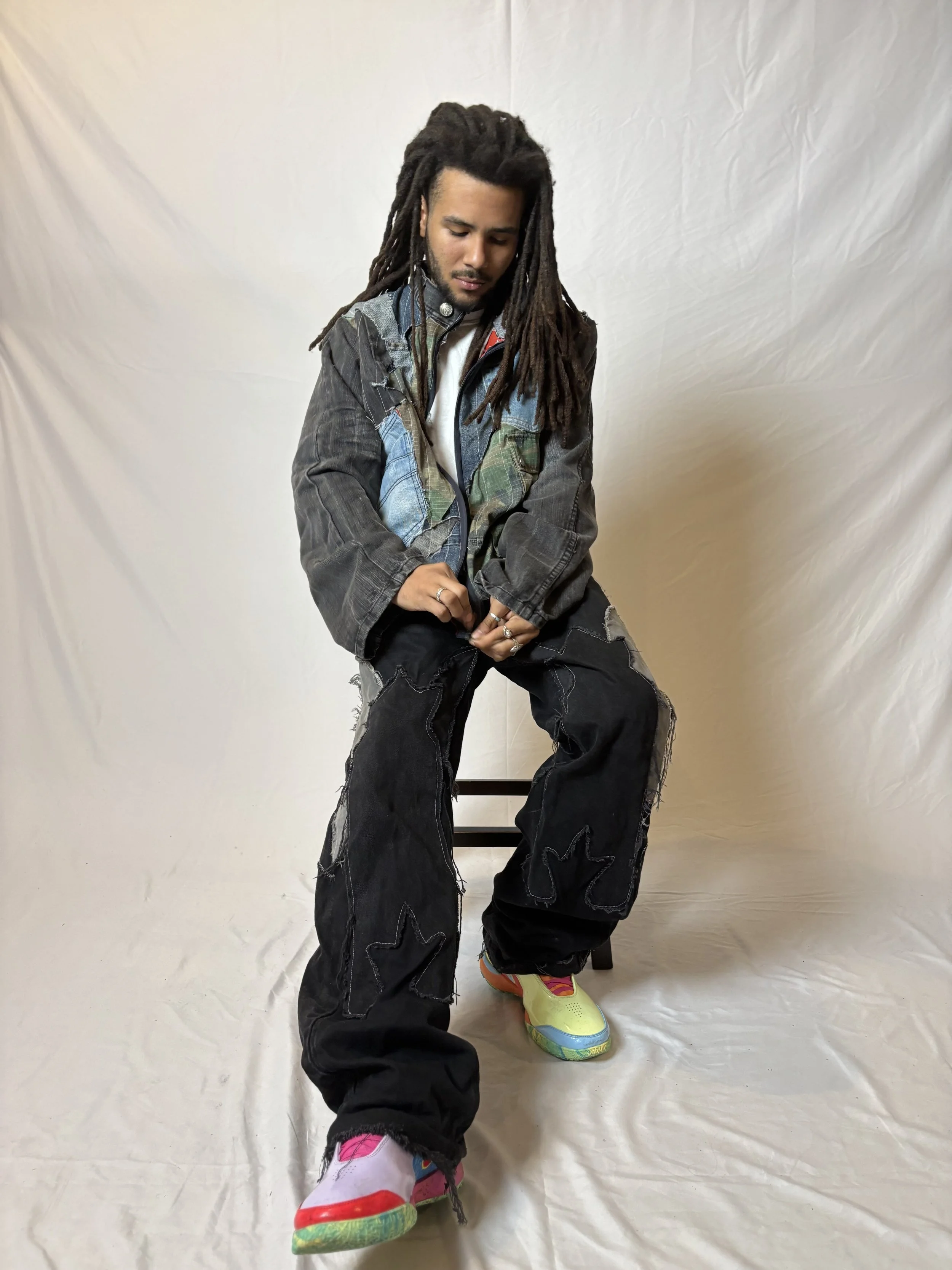 Through meticulous handcrafting and design, Chrisbaby transmutes overlooked items into sought-after, high-functioning pieces of art. He also offers personalized experiences where you can work with him in person at his patchwork house in Oakland to create a one-of-a-kind piece that reflects your style and experiences at an affordable rate. In addition to selling clothes online, Chrisbaby takes donations, commissions, and offers live sewing, tailoring and alterations at music festivals, pop-ups, and concerts. This process serves as a compelling critique of fast fashion, mass production, and classism in America, presenting a sustainable and imaginative alternative.